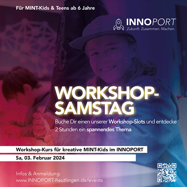 In unserem neuen Format WORKSHOP-SAMSTAG werden Kinder und Jugendliche in einem Kleingruppenworkshop in ein bestimmtes, selbst gewähltes Thema eingeführt. Unsere Workshopleiter – INNOPORT-Mitarbeiter, MakeRTreff-Mitglieder und weitere Helfer – geben ihr umfangreiches Wissen weiter und bieten Einblicke in die Welt der technischen Entwicklungen von heute und morgen.
