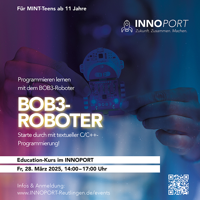 Hier lernst du, wie der BOB3-Roboter mit der textuellen Programmiersprache C/C++ gesteuert wird. Ein idealer Einstieg für Technikbegeisterte, die mehr über Programmierung erfahren möchten.