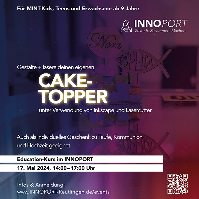 Bekomme eine Einführung in die Bedienung des Lasercutters (60 Watt Laser) und lasere die selbst gestalteten Caketopper aus Sperrholz aus.