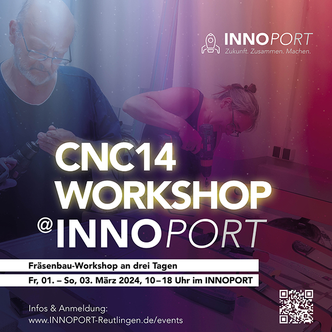 Der 3-tägige Workshop zum Bau einer eigenen CNC-Fräse findet von Freitag, 01.03., bis Sonntag, 03.03.2024, bei uns in der Werkstatt im INNOPORT Reutlingen statt.