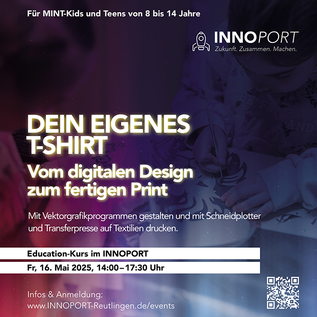 Bitte ein einfarbiges T-Shirt oder eine Stofftasche mitbringen - alle anderen Materialien und Laptops werden vom INNOPORT gestellt.