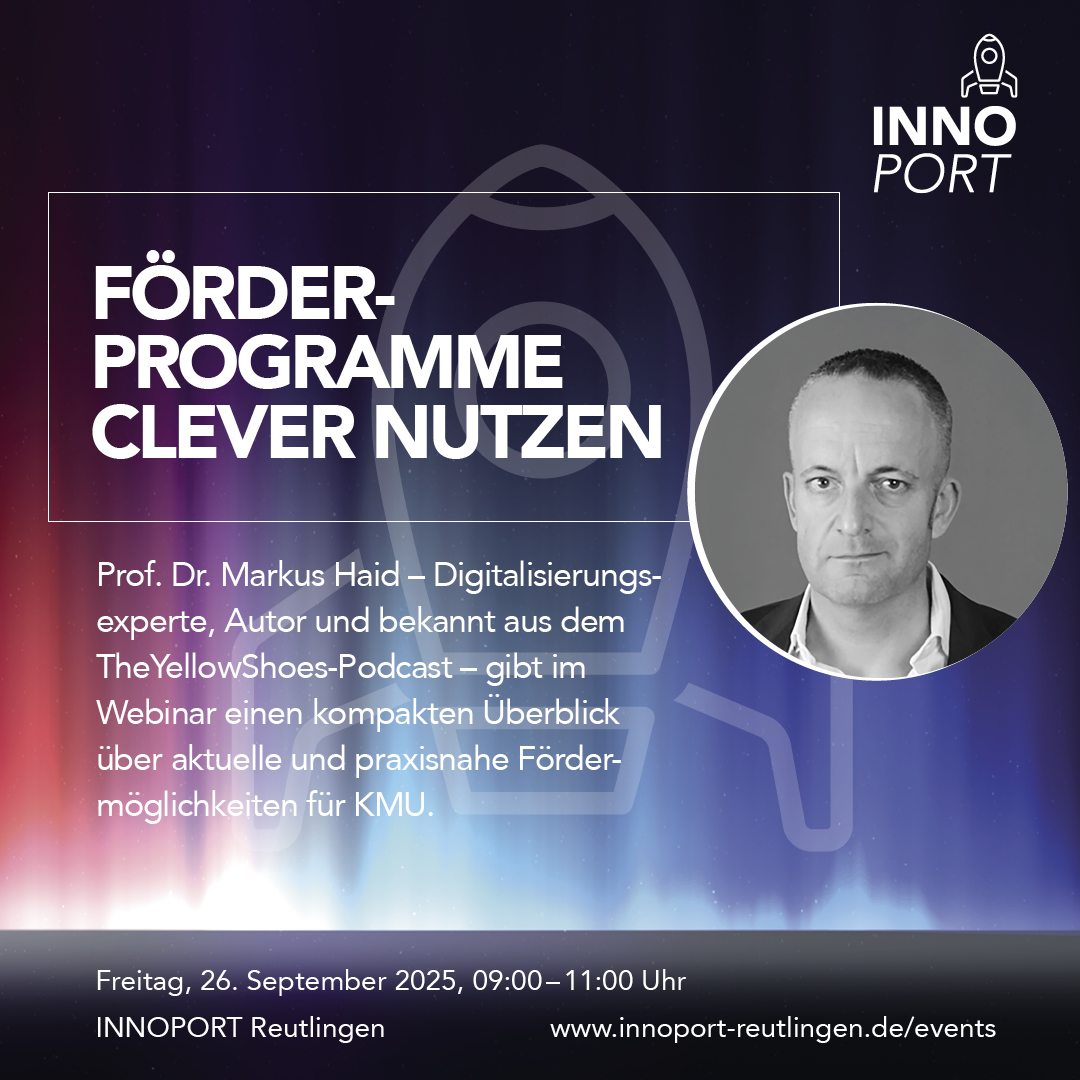 Im kostenfreien Webinar gibt Prof. Dr. Markus Haid einen kompakten Überblick über praxisnahe Förderprogramme für KMU. Vorgestellt werden aktuelle Möglichkeiten zur Finanzierung von Digitalisierung, Beratung, Qualifizierung und Innovation – verständlich, konkret und direkt anwendbar.